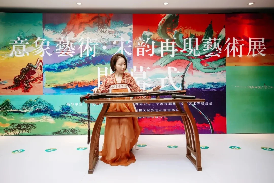 本次開(kāi)幕式浙東琴社古琴藝術(shù)家鄔斐靜老師還呈現(xiàn)了古琴表演——《秋風(fēng)詞》、《良宵引》,琴音游走起伏,仿佛將人引入宋代文化的古樸卷軸,遨游在傳統(tǒng)文化浸潤(rùn)的海洋,讓觀眾伴隨著琴聲徜徉在清幽的精神世界中,喚醒人內(nèi)心深處的思想共鳴。