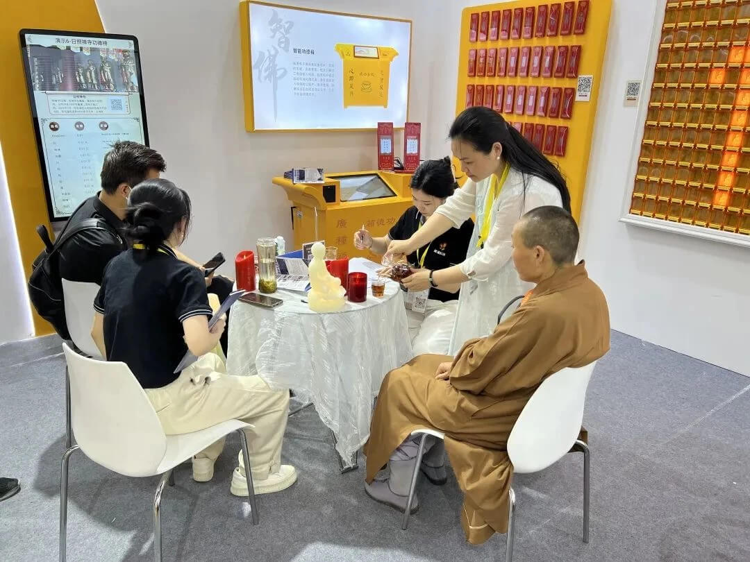 參與此次展會的展商眾多,展覽品琳瑯滿目,而金蛹秉承著“讓智慧供養(yǎng)遍布十方”的愿景,與高科技和深厚的佛教文化底蘊,在本次展會上的表現(xiàn)亮眼。