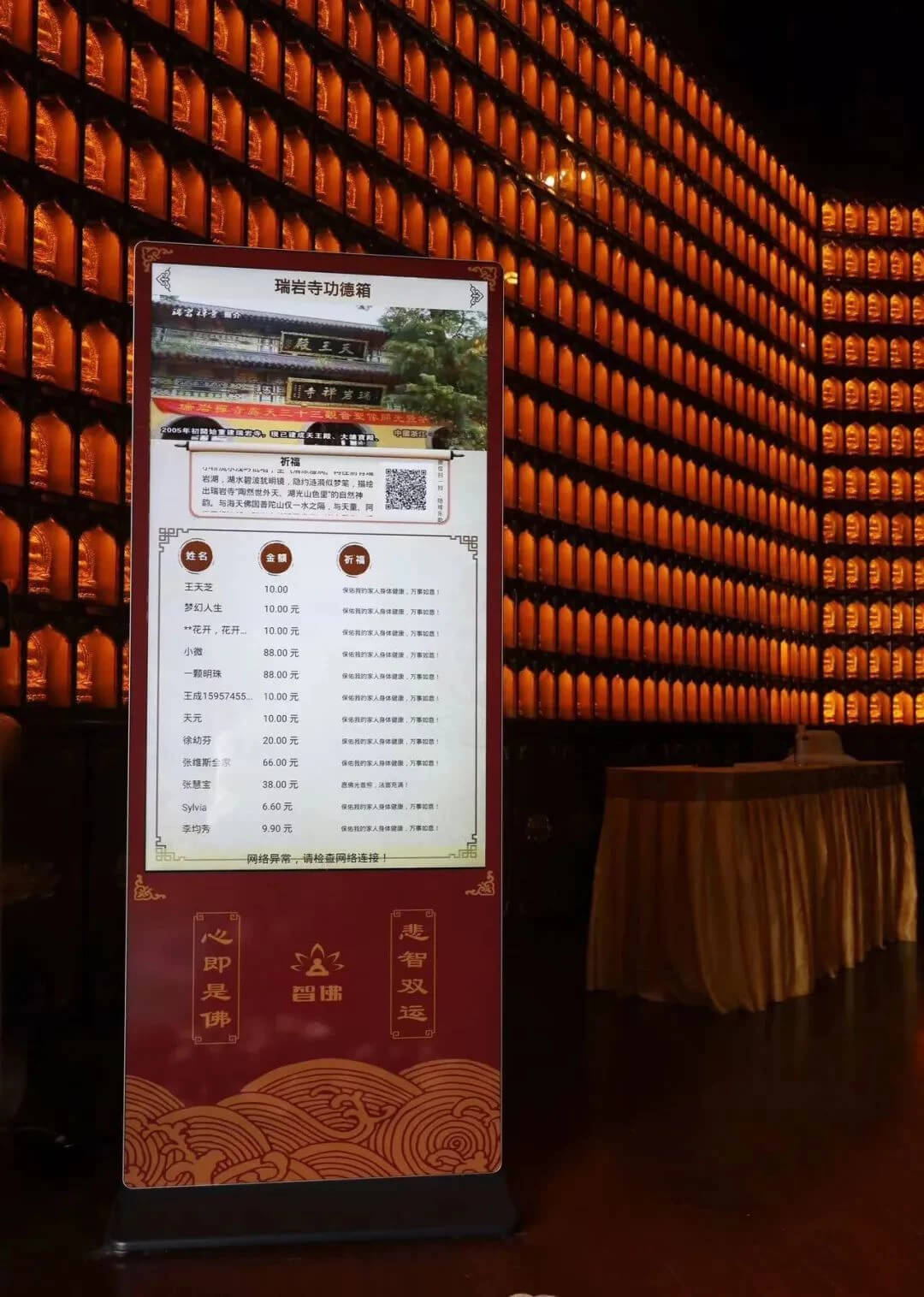 往大殿里走,金蛹科技為瑞巖寺打造的智能功德箱便擺放著最顯眼處,智能功德箱讓信眾的使用感覺(jué)到便捷,同時(shí)對(duì)寺院來(lái)說(shuō)管理流程更簡(jiǎn)潔,讓寺院科技化屬性也不斷提升。