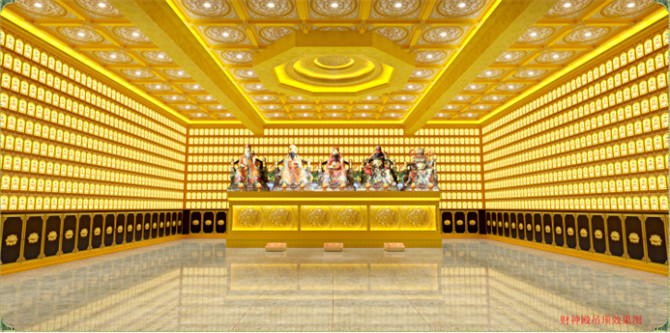 進(jìn)入財(cái)神殿,仿若進(jìn)入人間仙境,空間的設(shè)計(jì)使得殿堂有佛光普照之感,讓人感到震撼,既具有藝術(shù)性又方便環(huán)保。